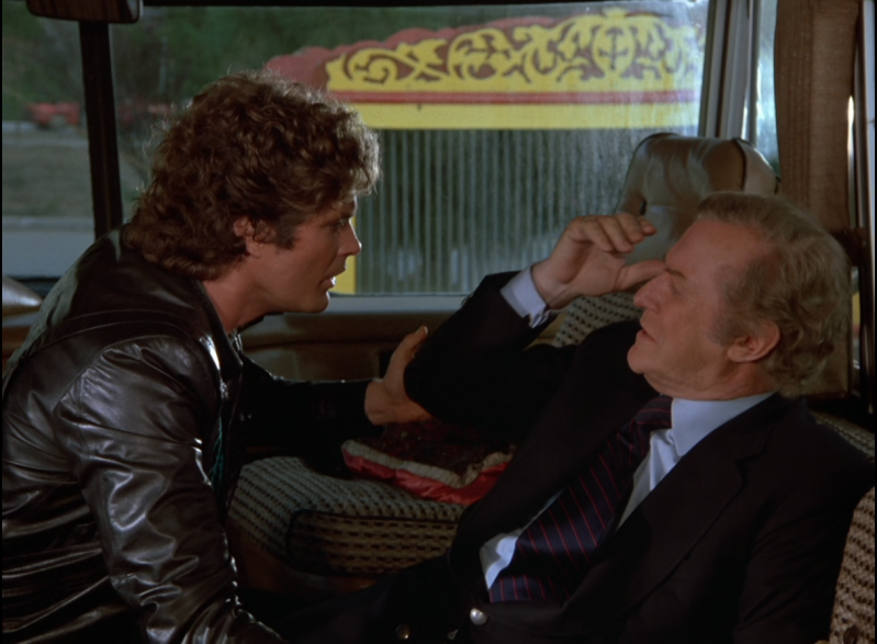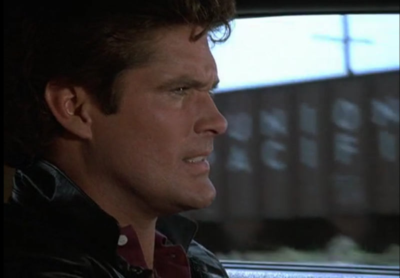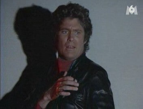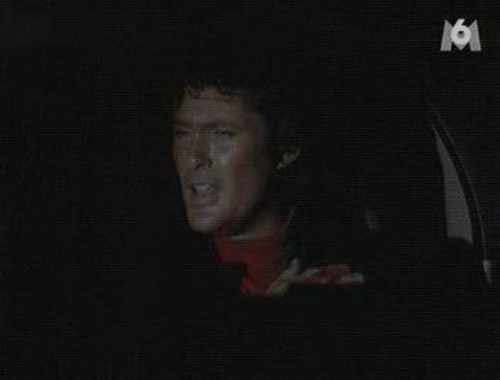 Or au moment de la confrontation quelques minutes plus tard, nous voyons bien dans la pénombre qu'il s'agit de David Hasselhoff, et non pas de Larry Anderson, présent dans cette scène.