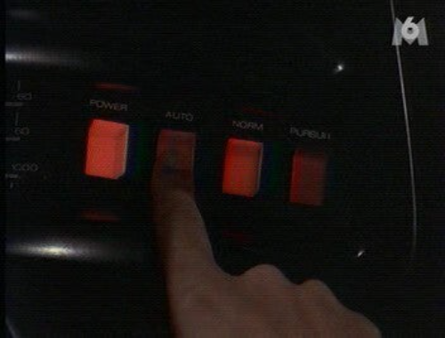 Lorsque KITT est en mode Poursuite pour échapper aux missiles. Le bouton n'est pas toujours de la même couleur.
