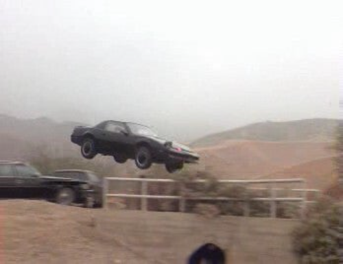 Lors de ce saut (utilisation de la fonction "Turbo Boost"), on peut voir qu'il ne s'agit pas d'une réelle Knight 2000 roulante mais d'une reproduction.