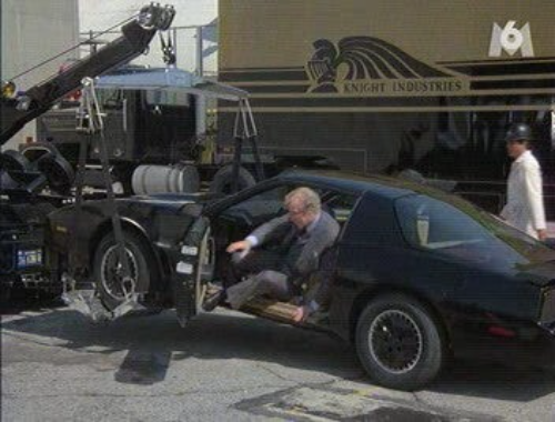 Lorsque KITT est de retour à la station-service, après avoir éjecté ces deux ravisseurs, on peut voir, à travers le siège conducteur, les bras de la réelle personne qui conduit.