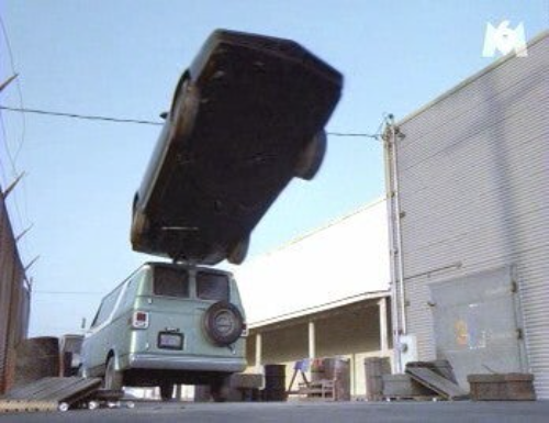 Bref, nous revoyons plus tard (dans le même épisode) une scène strictement identique, lorsque KITT fait peur à un garde.