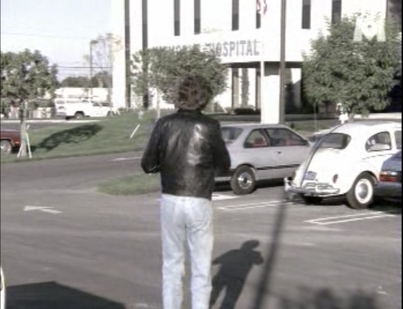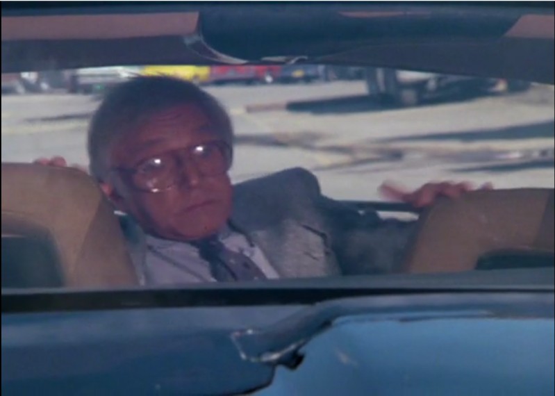 Ce personnage fait mine de partir en arrière lorsque KITT démarre, mais nous voyons bien que le véhicule reste statique.